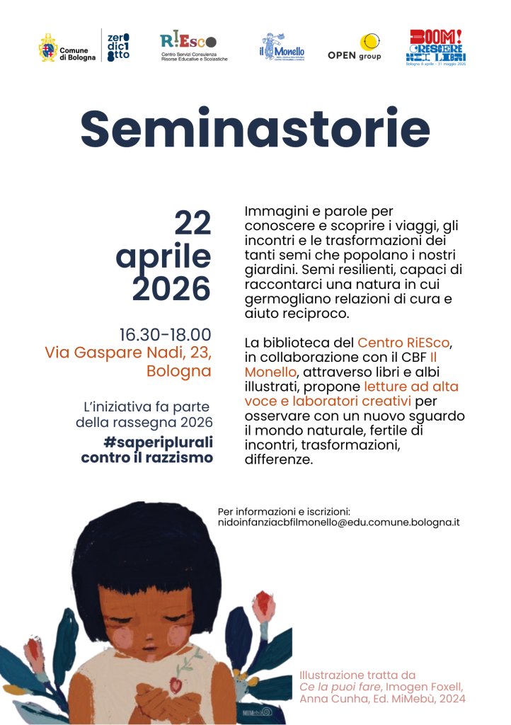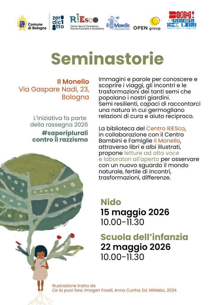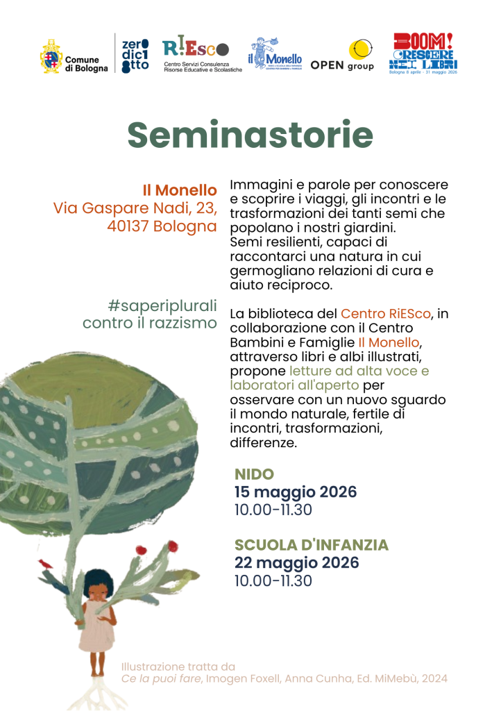Nell’ambito della rassegna Saperi plurali contro il razzismo, il Centro RiESco, in stretta collaborazione con il Centro Bambini e Famiglie “Il Monello”, propone l’iniziativa “Seminastorie”.